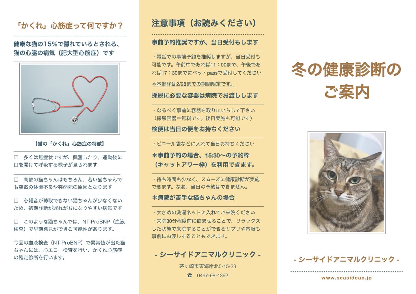 猫ちゃん限定、冬の健康診断をぜひご利用ください!