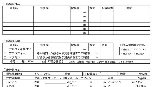 当院では去勢手術・避妊手術に限らず、すべての麻酔において、麻酔記録をつけるようにしています